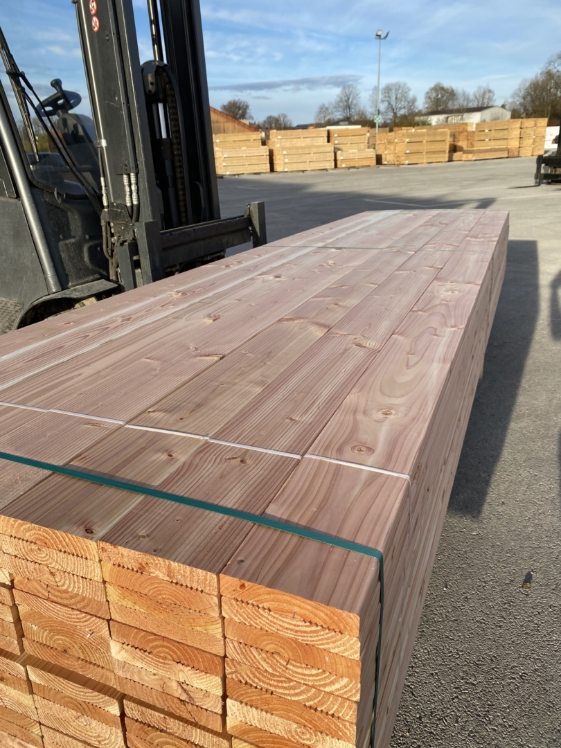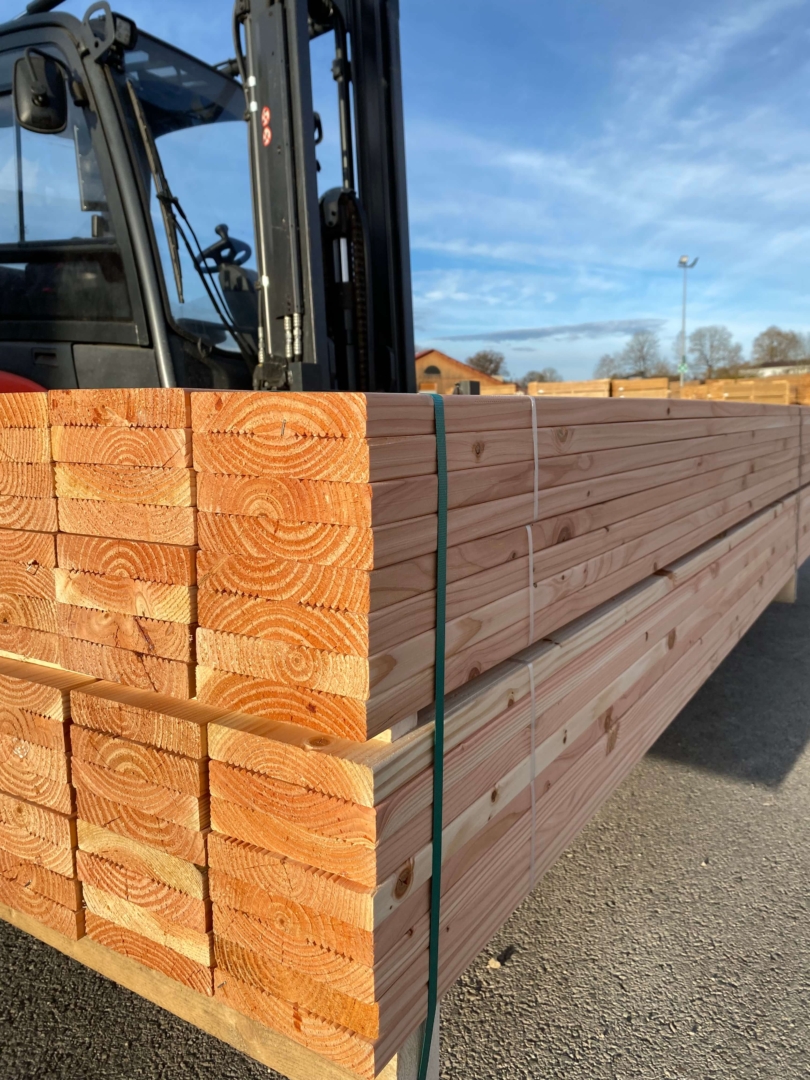 Le douglas est un bois résineux réputé pour sa durabilité naturelle, sa résistance mécanique élevée et sa teinte chaleureuse rosée.